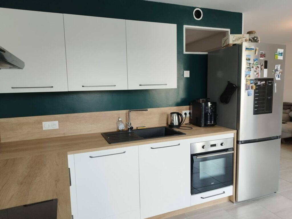 Cuisine laqué mat ral, plan de travail stratifié